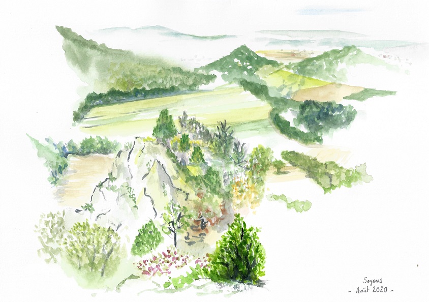 Renouvelée le 16 août prochain (inscription auprès de l’Auberge), la balade « Bain de soleil en forêt », permet d’observer les lignes de force du synclinal, comprendre sa formation, imaginer les paléoenvironnements. Par le dessin ou l’écriture, chacun transcrit sa vision du paysage des Sables blancs : sa composition, sa formation, son esthétique, son évolution.